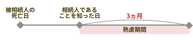 この場合、相続人だと知った日が起算点になり、そこから3ヵ月が熟慮期間です。