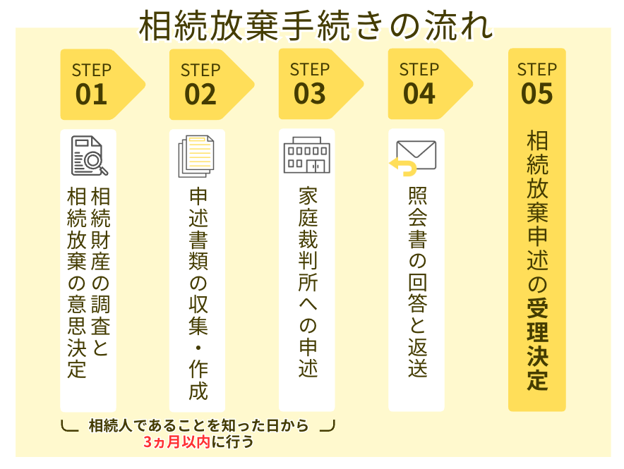 相続放棄は、相続人が亡くなった方のすべての財産と債務を放棄する法的手続きです。ここでは、相続放棄の手続きと流れを解説します。
