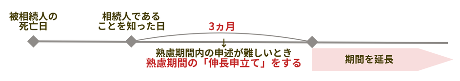 なお「伸長申立て」の期間は、当初の熟慮期間である3ヵ月以内です。